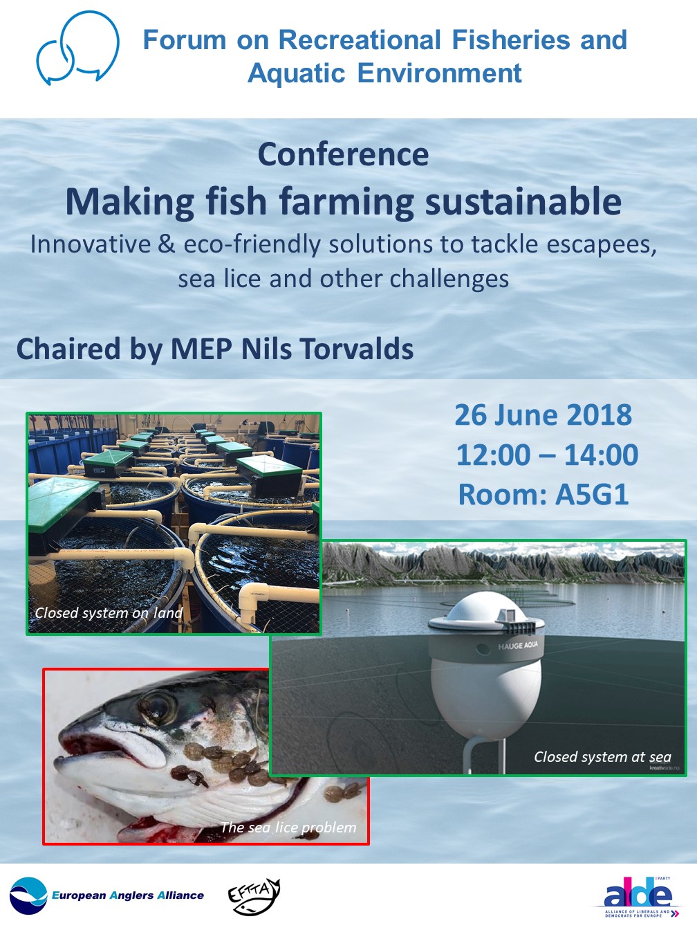 Closed systems effectively address all negative impacts on fish stocks and the environment but they are more expensive to put in place and run. However, during the event some entrepreneurs will present their closed systems to demonstrate that they are profitable, environmental-friendly and sustainable. Norway is a world leader in fish farming. Amongst the panel speakers there will be the Norwegian member of the European Anglers Alliance (Norges Jeger- og Fiskerforbund), who in conjunction with the Federation of Norwegian Industry will present ongoing developments and strategy for the Norwegian aquaculture sector towards sustainable fish farming. The final aim of the event is to encourage European policy-makers to pave the way for more closed systems by allocating more resources to the further development of profitable closed systems to produce more food in a more environmental-friendly way.