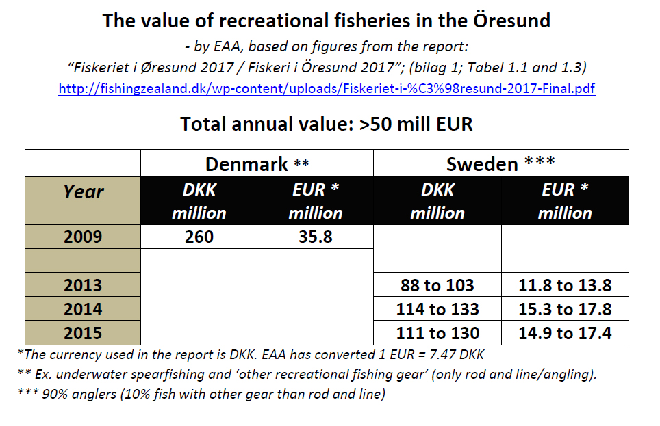 - EAA release 1 February 2018: “Recreational sea angling in the Öresund might be worth over €50 million euro”